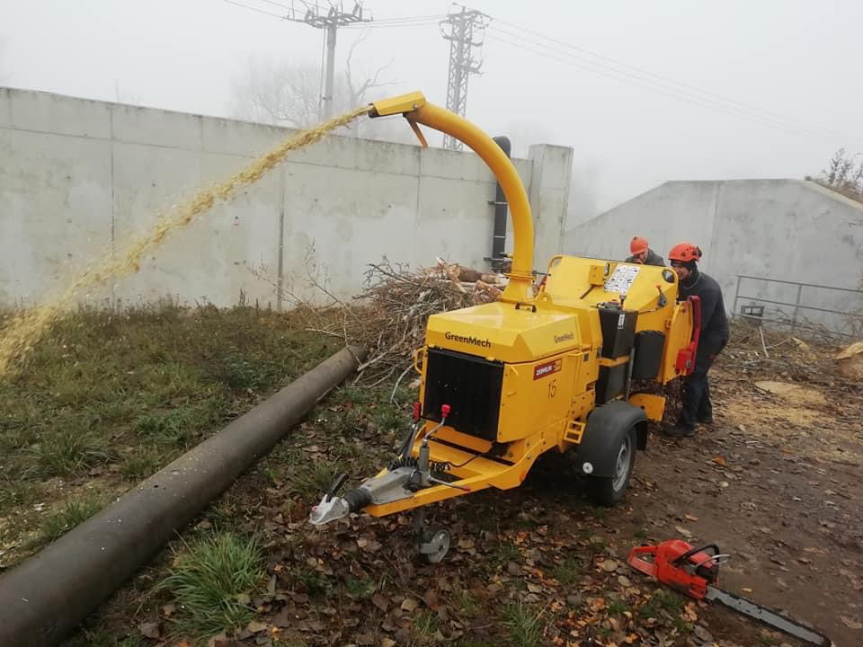 Zbylou dřevní hmotu jsme schopni zlikvidovat štěpkováním a to až do průměru 15cm. Štěpka se dá následně použít na mulčování nebo odvést na likvidaci například do kompostárny.
