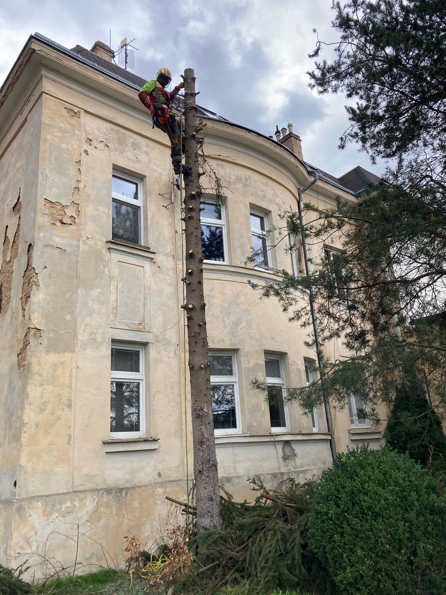 Do našeho týmu patří vyškolení profesionálové, kteří mají s nejen rizikovým kácením dlouholeté zkušenosti a jsou schopni provádět i opravdu složité kácení. O rizikovém kácení hovoříme, když strom nelze pokácet celý a je nutné ho pomocí lezecké techniky zkracovat postupně od koruny a větve s kmenem se musí bezpečně spouštět na zem.